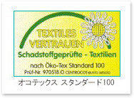 『オコテックススタンダード100』は、繊維素材が人体にも自然にも無害で低アレルギーであることを証明する国際規格です。